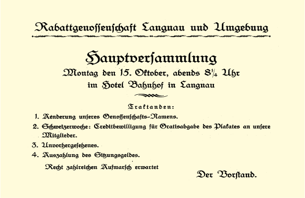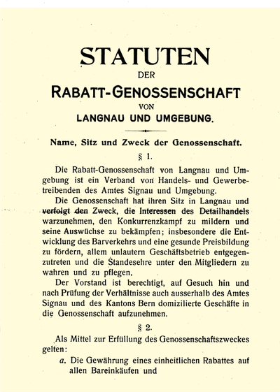 An der ausserordentlichen Hauptversammlung vom 15. Oktober 1923 erfolgte die Umwandlung von der Genossenschaft zum «Rabattverein des Amtes Signau» mit Sitz in Langnau.
