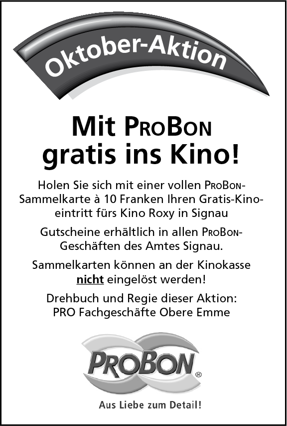 Tradition hat im Amt Signau auch die Unterstützung von kulturellen und sportlichen Anlässen. Manchmal sind diese gekoppelt an einen vergünstigten Eintritt mit einer vollen Sammelkarte (wie z.B. die Kino- Aktionen). Seit Mitte der neunziger Jahre trat oder tritt der ProBon-Verein aber häufig auch als Sponsor auf: beim Cartoon Festival Langnau, beim Woodrock- Festival, beim Paragraph K oder bei den Jazz-Nights Langnau und bei vielen anderen mehr. Die ProBon- Geschäfte sind damit auch ein wichtiger Förderer von Sport und Kultur in der Region.